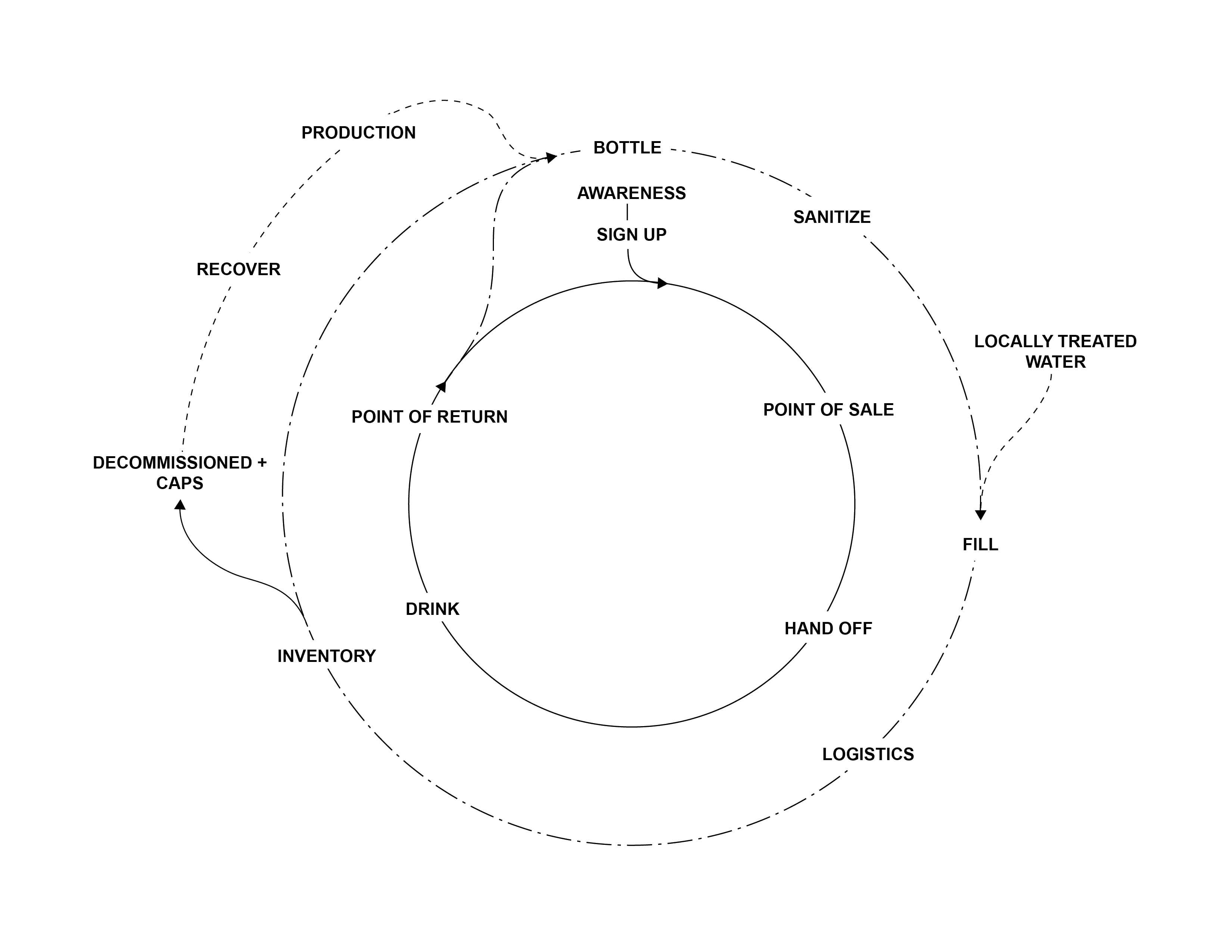 The WaterBoys user journey is built around four key principles: Pickup, Drink, Refill, Return. Customers conveniently pick up a pre-filled, high-quality bottle from a designated location using the WaterBoys mobile app for contactless checkout. They then enjoy clean, refreshing water on the go, easily refilling the bottle at any participating refill station or exchanging it for a freshly filled bottle. When finished, they simply return the bottle to any available designated drop-off points spread through the community.